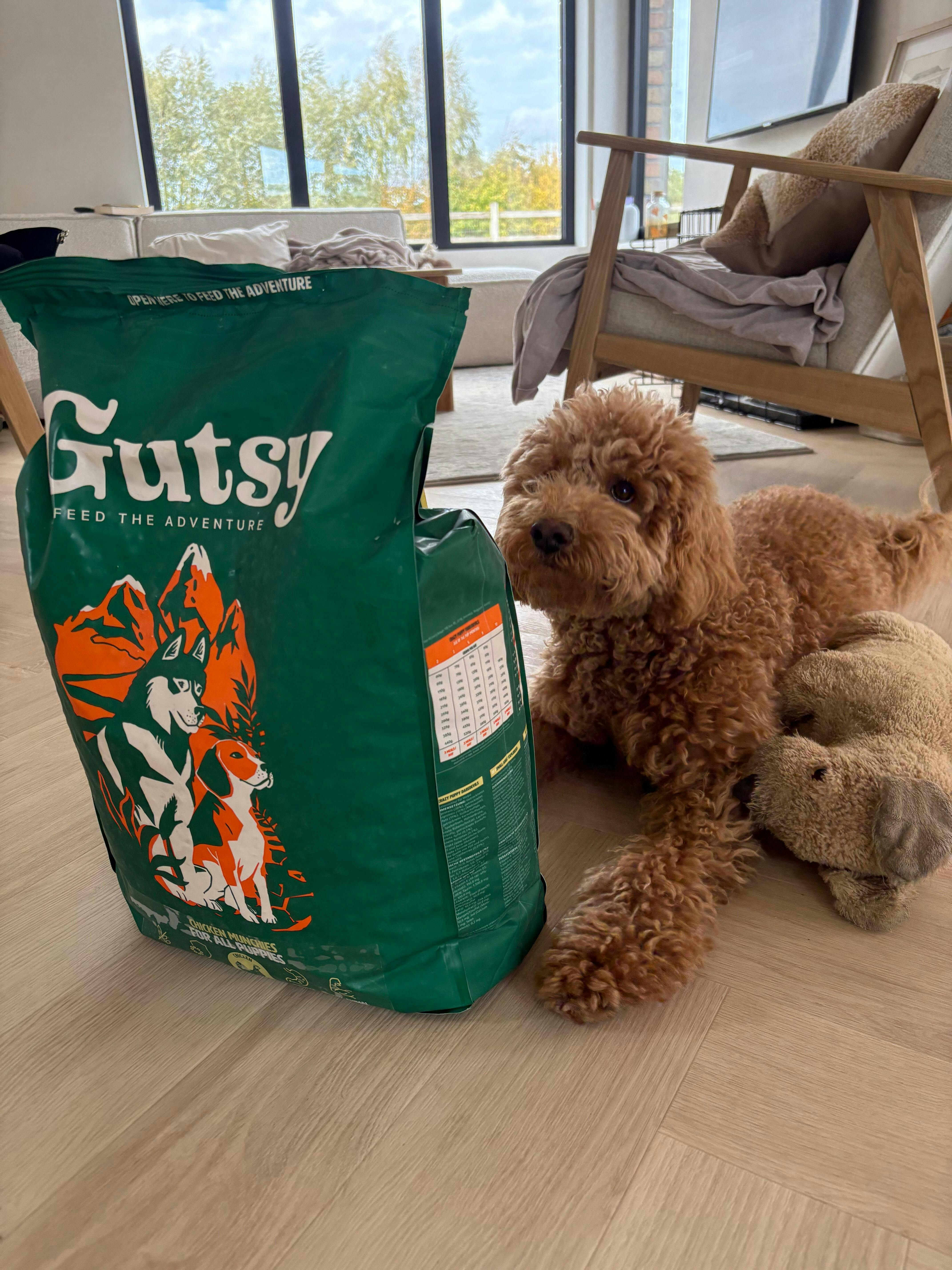 Gutsy Chicken Munchies voor puppy zijn graanvrij en ontworpen om de immuniteit te verhogen en de spijsvertering te verbeteren. Ze bestaan uit 85% dierlijke eiwitten, zijn gemaakt met lokale ingrediënten en bevatten geen nare vulmiddelen.
